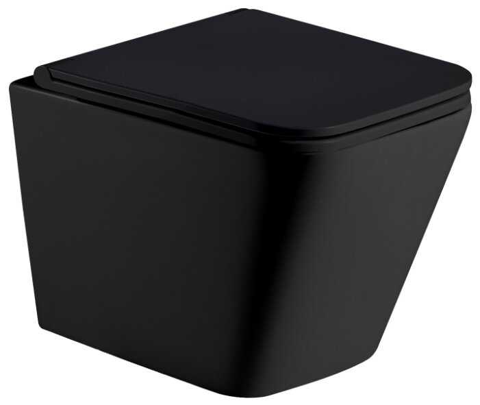 Козырный черный унитаз. Размеры хорошие, качество недурственное. За счет цвета грязи и пятен каких-либо и так не видно, но покрытие особенное, отталкивает любые загрязнения. Сидушка мягко опускается, смывается отлично и без ободка.