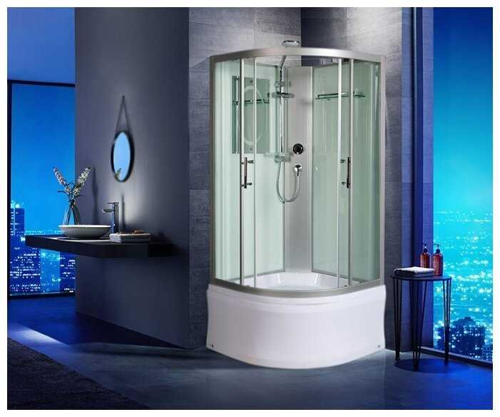 - + Зеркало, полочка, мыльница, нескользкий поддон, нет крыши