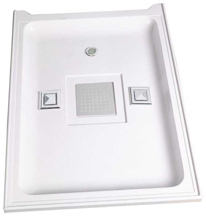- + Акриловый поддон с нескользящей поверхностью. Тропический душ. Вентиляция.