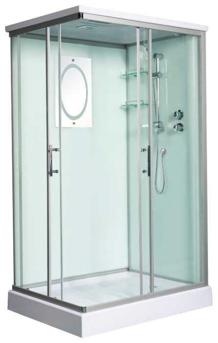 - + Хорошие стекла. Есть верхний душ, мыльница, регулировка высоты основного душа, лейка выглядит надежно. В душе много места, удобно мыться.