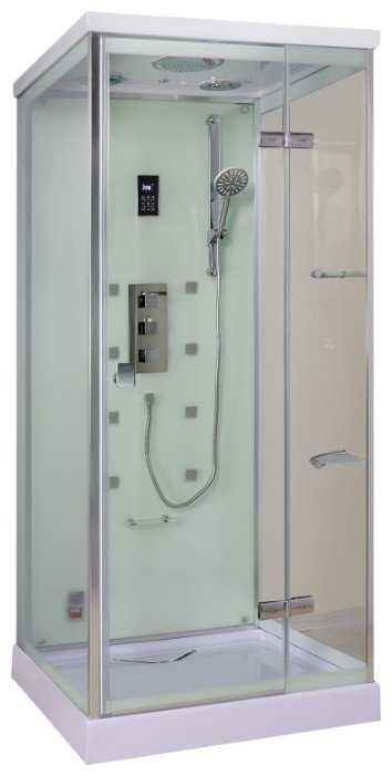 - + Кабина стильная и просторная, с широкой распашной дверью, гидромассажем, подсветкой, полками и прочими благами цивилизации, вплоть до блютуза.