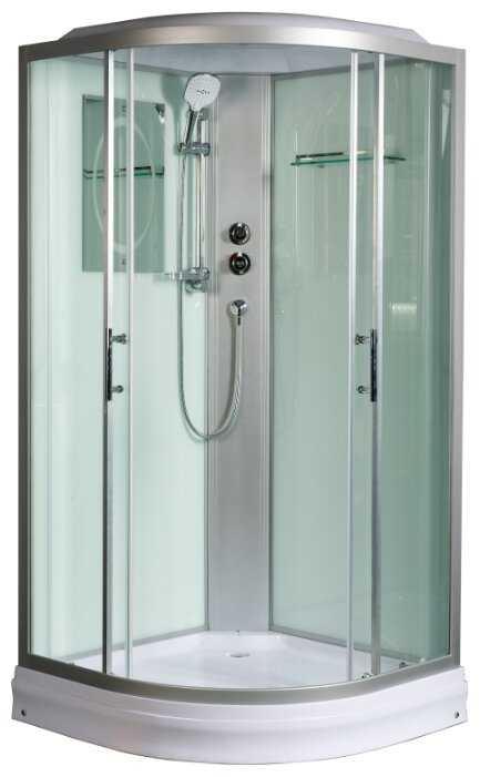- + широкий вход, вентиляция, тропический верхний душ, антискользящее покрытие поддона, зеркало+полочка