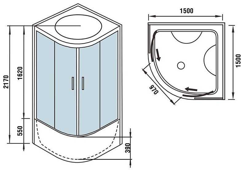 Комплектация | Душевой бокс - 1 шт. Экран - 1 шт. Душевой гарнитур - 1 шт. Верхний душ - 1 шт. Излив - 1 шт. Смеситель-термостат - 1 шт. Полка - 2 шт. Зеркало - 1 шт. Подголовник - 3 шт. Сифон - 1 шт. Инструкция - 1 шт., Гарантия | 5 лет, Страна | Германия, Стиль | современный, Материал профиля | алюминий, Оснащение | душевой гарнитур/сифон/мыльница/смеситель-термостат/экран/слив-перелив/смеситель каскад