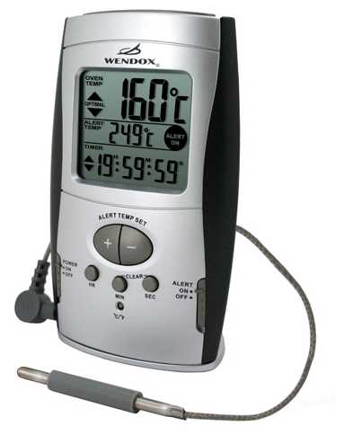 Начинает показывать температуру только после 50 градусов, что не удобно. Иногда нужно замерить температуру в 40 градусов. Щуп короткий и толстый, не дает возможность замерить температуру внутри пекущегося хлеба. Нужен щуп более тонкий, острый и длинный. Подставка для щупа неустойчивая. На поверхности противеня не стоит, падает. Но хорошо крепится к решетке.