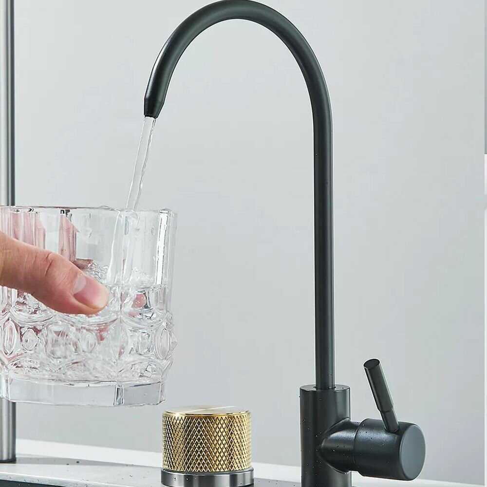 Кран с помпой для питьевой воды работает мягко, но гусак иногда помят, а деталь для подвода треснута. Шланг для фильтра идет в комплекте, хотя фильтр отдельно. Пользователи успешно подключают, хваля удобство. Качество фитингов оставляет вопросы. -