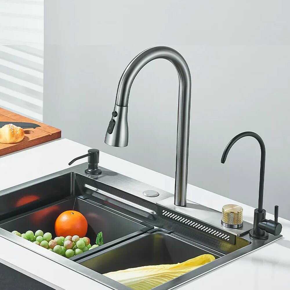 Отзывы о Многофункциональная кухонная мойка с двумя водопадами и термостатом