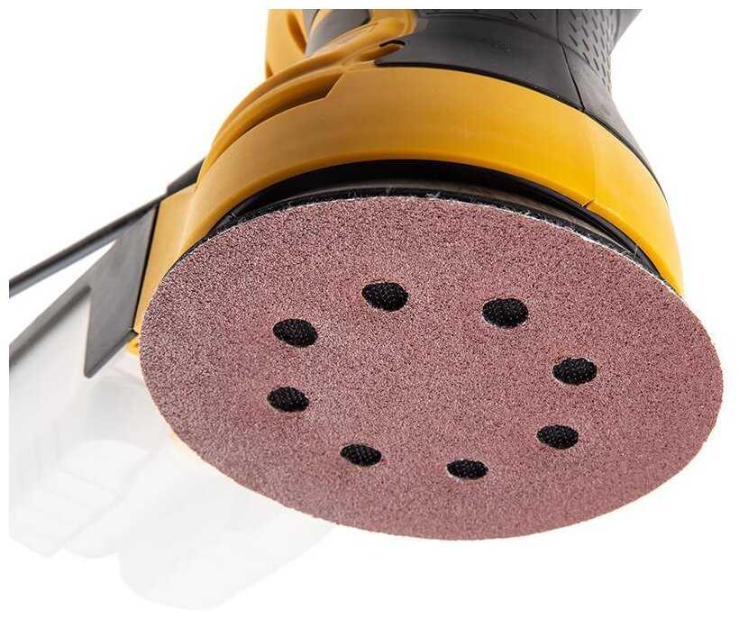 Лучше всего использовать абразивные диски на липучке (125 мм) с отверстиями для пылеудаления. Такие диски держатся надежнее и дольше, так как пыль лучше отводится через отверстия, предотвращая забивание липучки. Дешевые диски без отверстий забиваются быстрее, хуже держатся и требуют более частой замены. Пользователи успешно применяют зернистость от 80 (грубая шлифовка) до 1500 (матировка ЛКП, финишная полировка). Смола на дереве быстро убивает диск. -