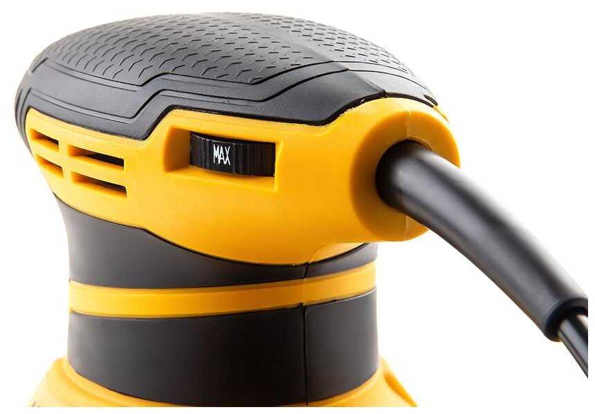 Регулятор оборотов работает по принципу реостата, обеспечивая плавное изменение скорости вращения в зависимости от положения колесика (а не ступенчато). Это позволяет очень точно подбирать скорость под конкретный материал и зернистость абразива, от "очень нежной обработки" на малых оборотах до интенсивного шлифования на максимальных. Пользователи оценивают эту функцию как удобную и эффективную. -