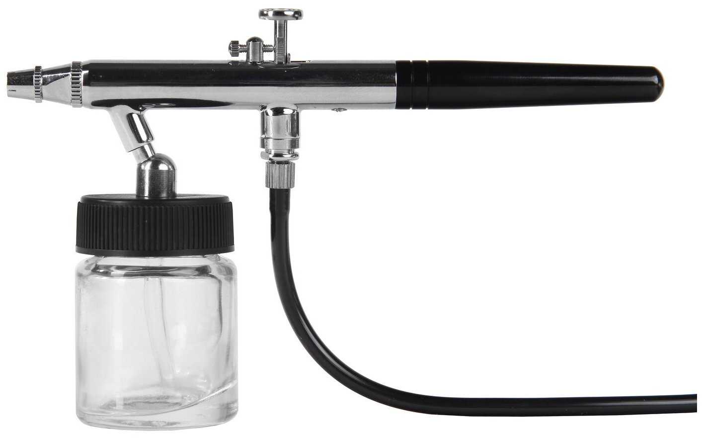 Компактный, удобный. В руках держать приятно. Нравится как он сидит в руке, можно аккуратно что нибудь изобразить. Краску распыляет ровно, не брызгается. Собран качественно, люфтов нет. всё аккуратненько на резьбе собирается. Стоит не дорого, бюджетный вариант, дешевле только из Китая, но там получишь не ясно что, да и долго выходит. А тут купил его в обычном магазине.