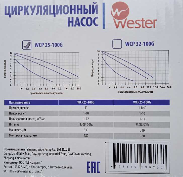 | Подробная комплектация : | Насос циркуляционный Wester WCP 25-100G (с гайками) |