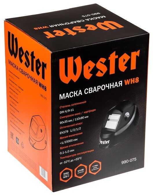 Покупал сварочный аппарат Wester, заодно купил и маску данного производителя, маска понравилась, работать очень удобно и приятно, это моя первая маска, но в ней работать только в радость, советую, в комплекте запасные стекла, замена происходит очень легко. При снятие защитной пленки вы это ощутите, так как по другому их не снять.