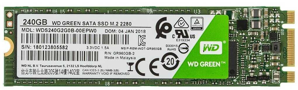 Отзывы о Твердотельный накопитель Western Digital WD Green SATA M.2 (WDS240G2G0B)