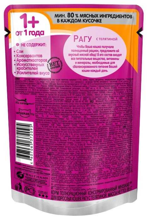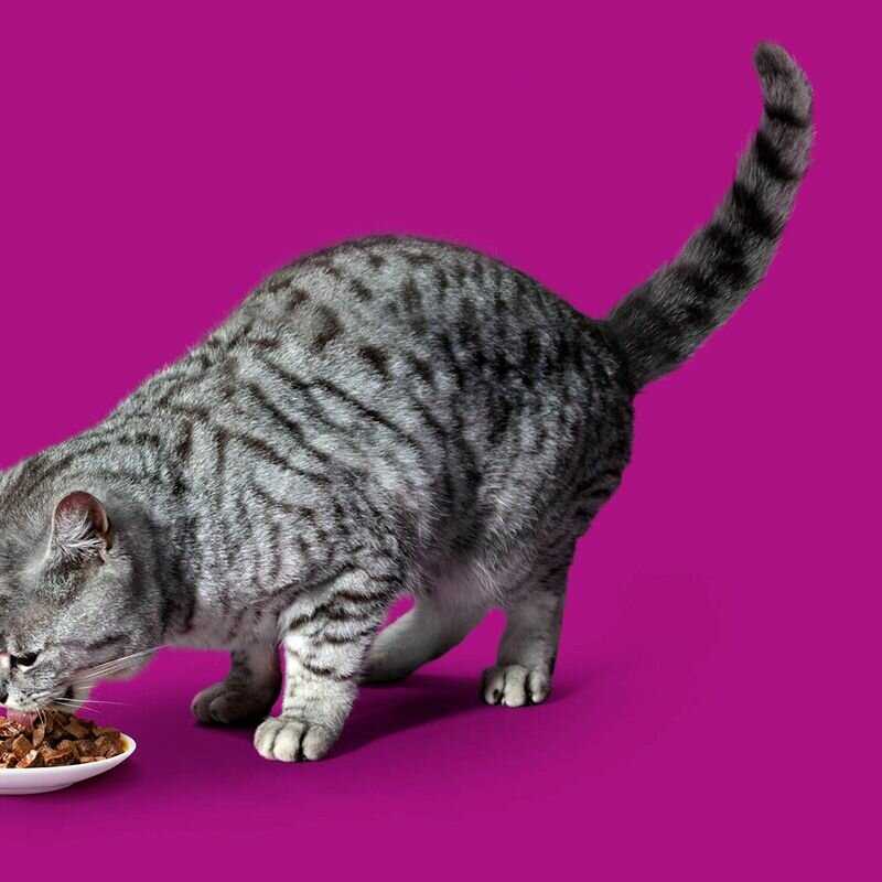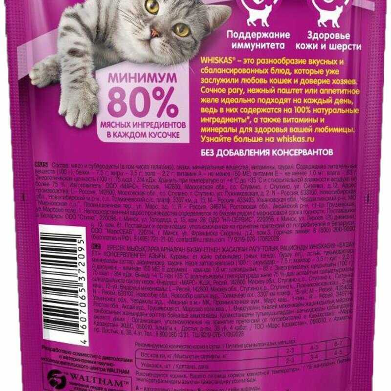- + Очень нравиться моим кошкам . Очень хороший. Открываешь пакетик , а там ровненькие кусочки. Это единственный корм который едят все мои четыре кошки