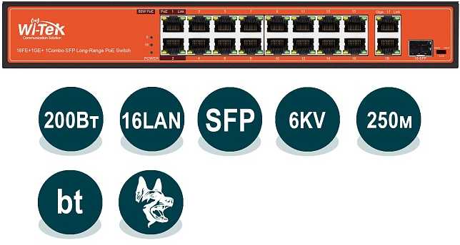 2 отзывов пользователей o Wi-Tek Неуправляемый коммутатор PoE 200Вт (WI-PS518G)