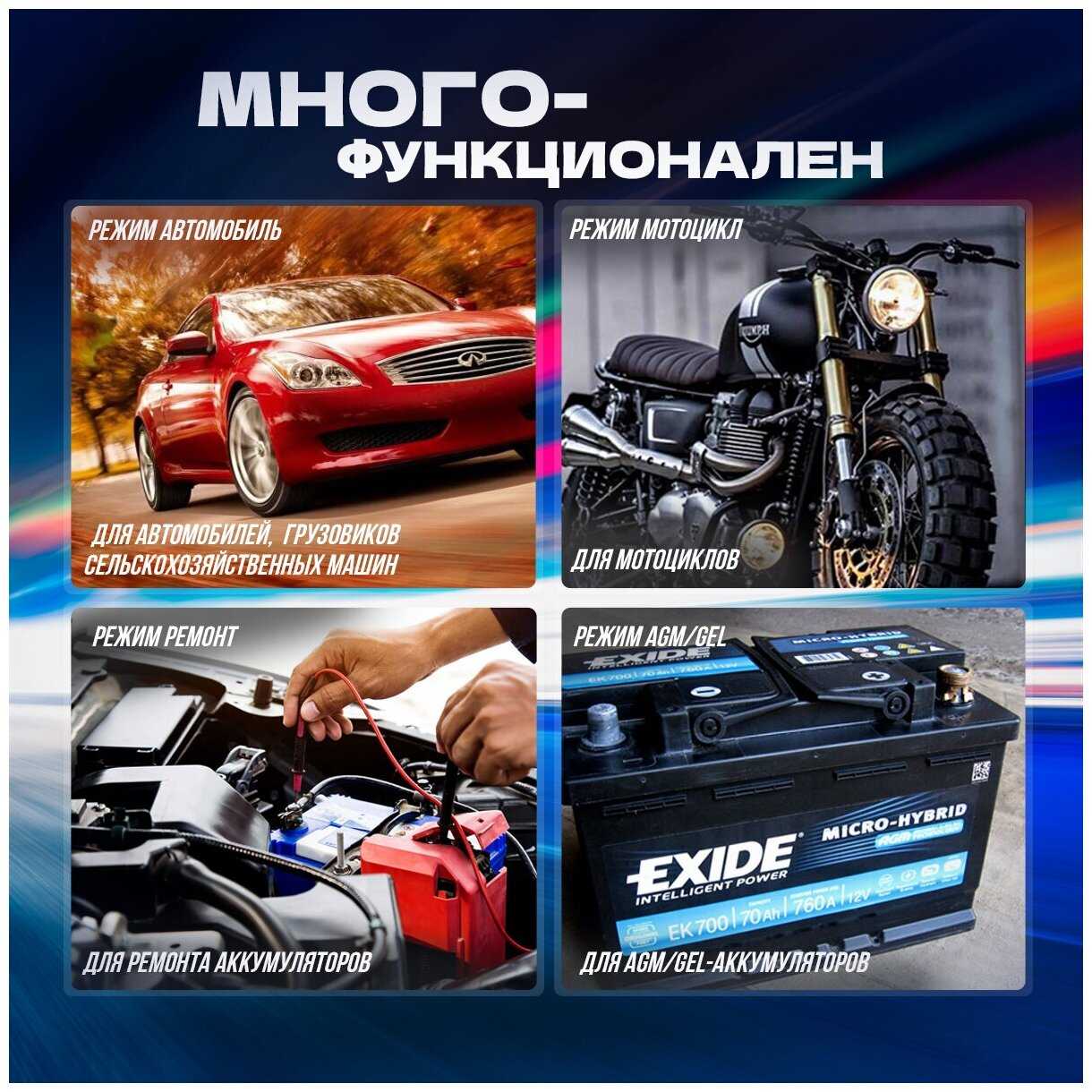 | Функции : | автоматическое отключение зарядки, подходит для AGM/GEL аккумуляторов, режим зимней зарядки |