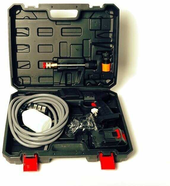 | Подробная комплектация : | Пистолет высокого давления, Аккумулятор, Зарядное устройство, Быстросъемный шланг, Спринклер 0°, Спринклер 40°, Удлинитель, Фильтр, Пенообразователь, Инструкция по эксплуатации и Кейс. |