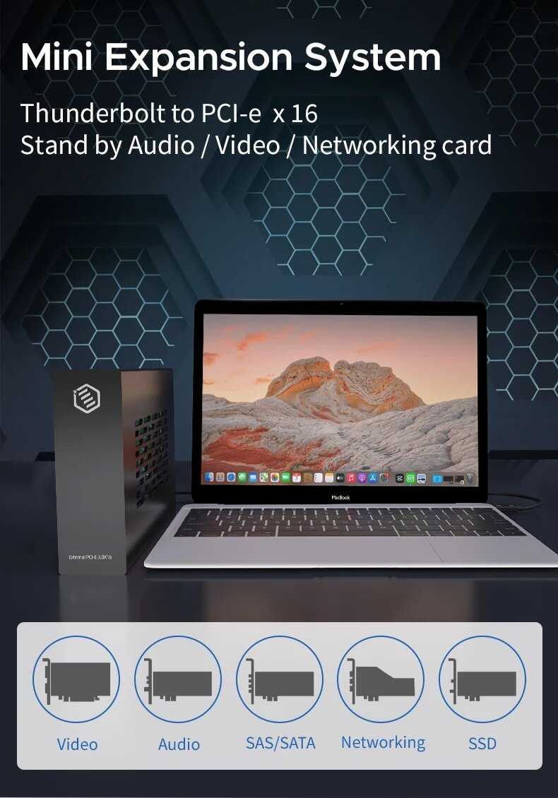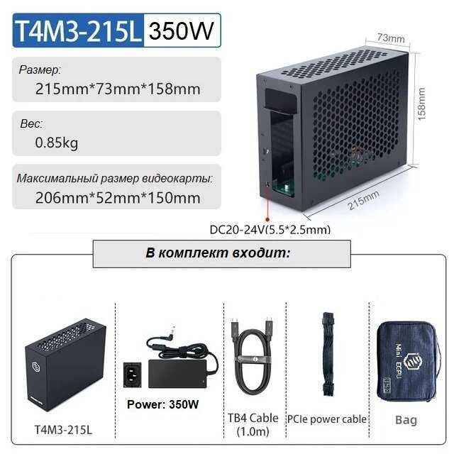 - + Компактный формат, наличие доп питания для видеокарты, кабель thunderbolt в комплекте.