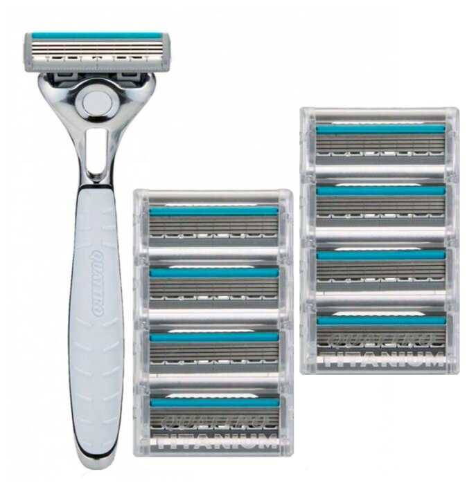 Прежде всего, я получаю гораздо меньше раздражения кожи, так как я Quattro Titanium Лезвия использую.