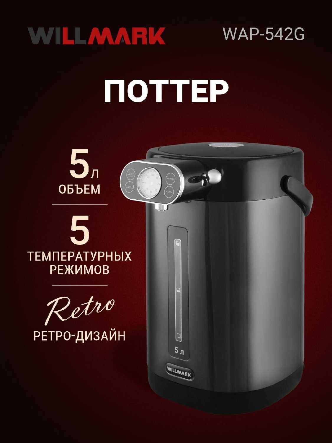 Отзывы о Поттер WILLMARK WAP-542G (5л, дисплей измерения t°C, 5 темп. реж, поддержание температуры, 1450Вт)