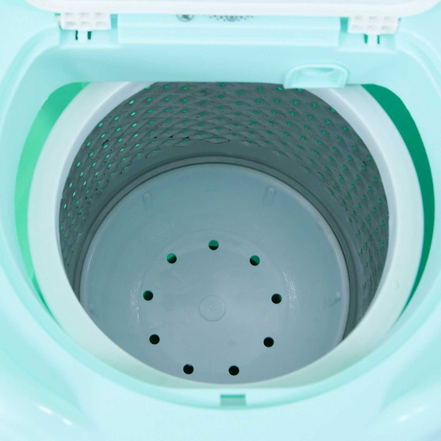 - + маленький размер очень компактная лёгкая при заполнении бельем становится более устойчивой при отжиме