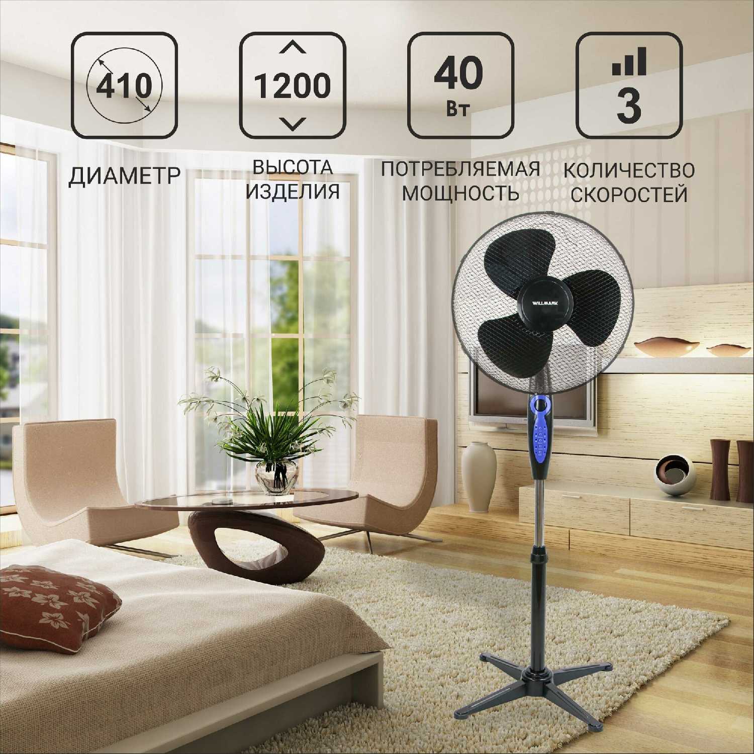 Отзывы о Вентилятор WILLMARK WSF-42BRC (напольный, 1200мм/410мм/40Вт, ПДУ, 3 скорости)