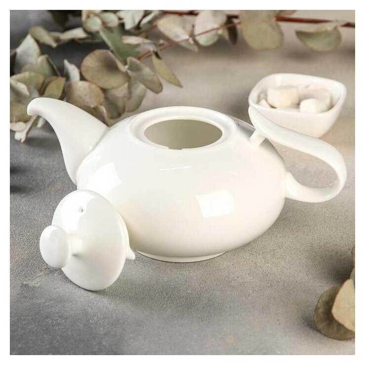 Из плюсов: изящный дизайн, стильно и лаконично выглядит, белый глянцевый фарфор, легкий, чаинки не попадают в чашку, несмотря на то, что внутри нет ситечка, крышка имеет двойное крепление и не выпадает при наливании чая, удобная ручка, доступная цена.