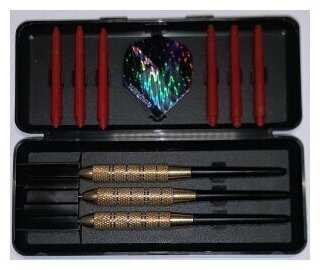 Дополнительная информация : | уровень игры: профессиональный, состав набора: правила игры иглы оперение дротики хвостовики чехол для дротиков, тип наконечников: Steeltip, подробная комплектация: дротики (3 шт) доп. аксессуары, материал баррели: латунь |