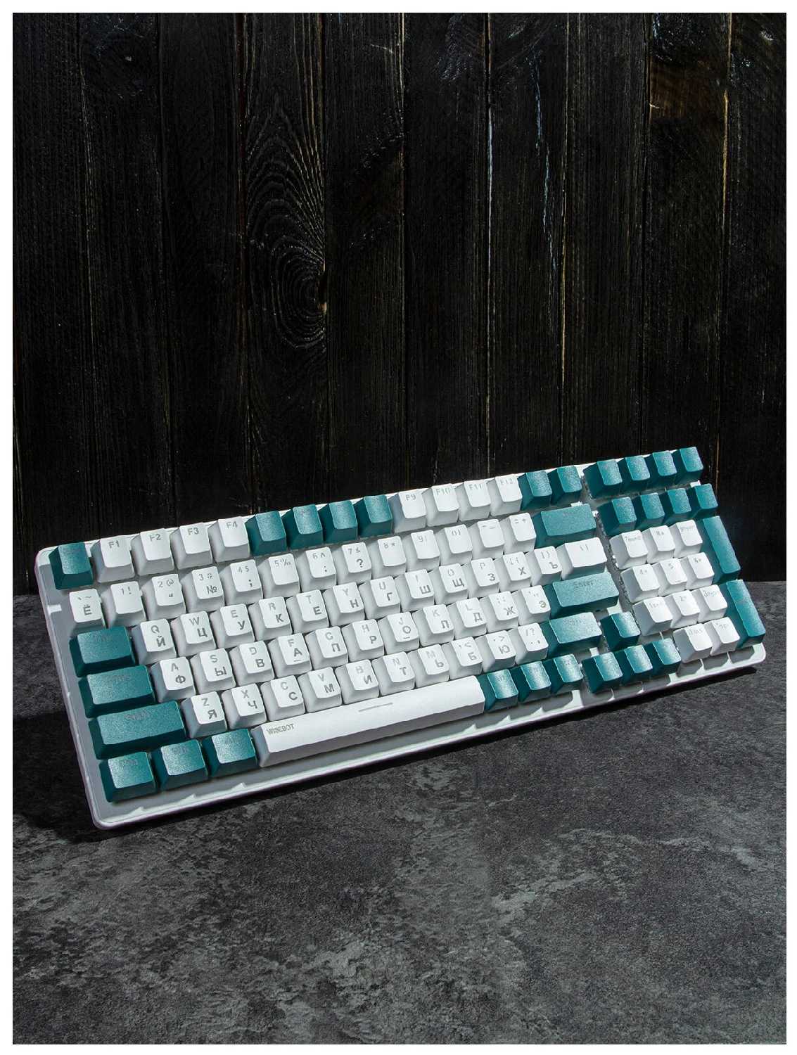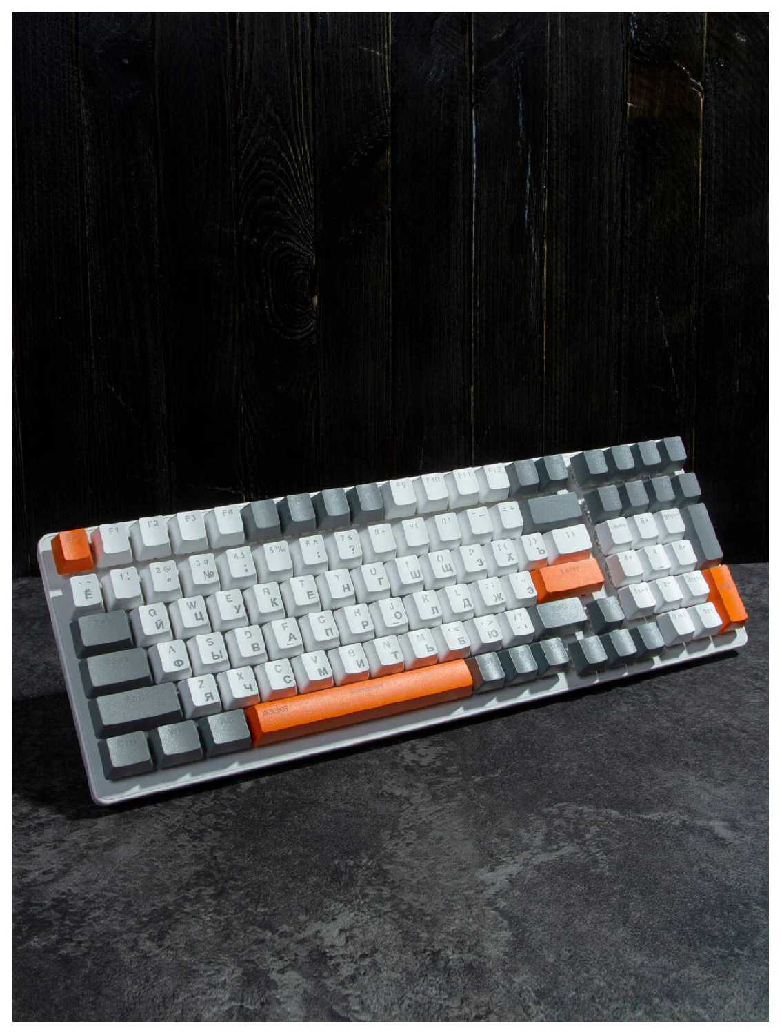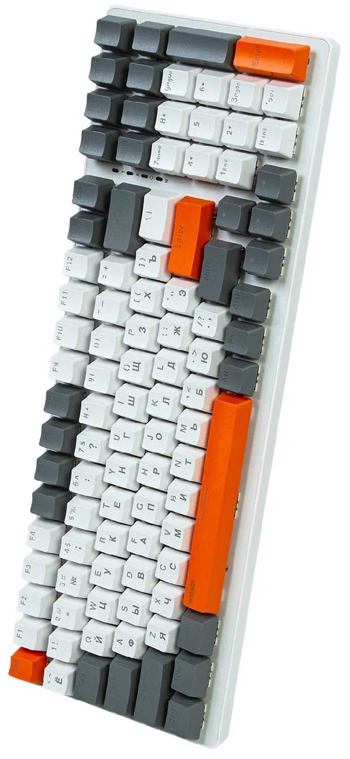 - Клавиши PBT с двойным шрифтом (латиница + кириллица) устойчивы к истиранию и легко снимаются съёмником.