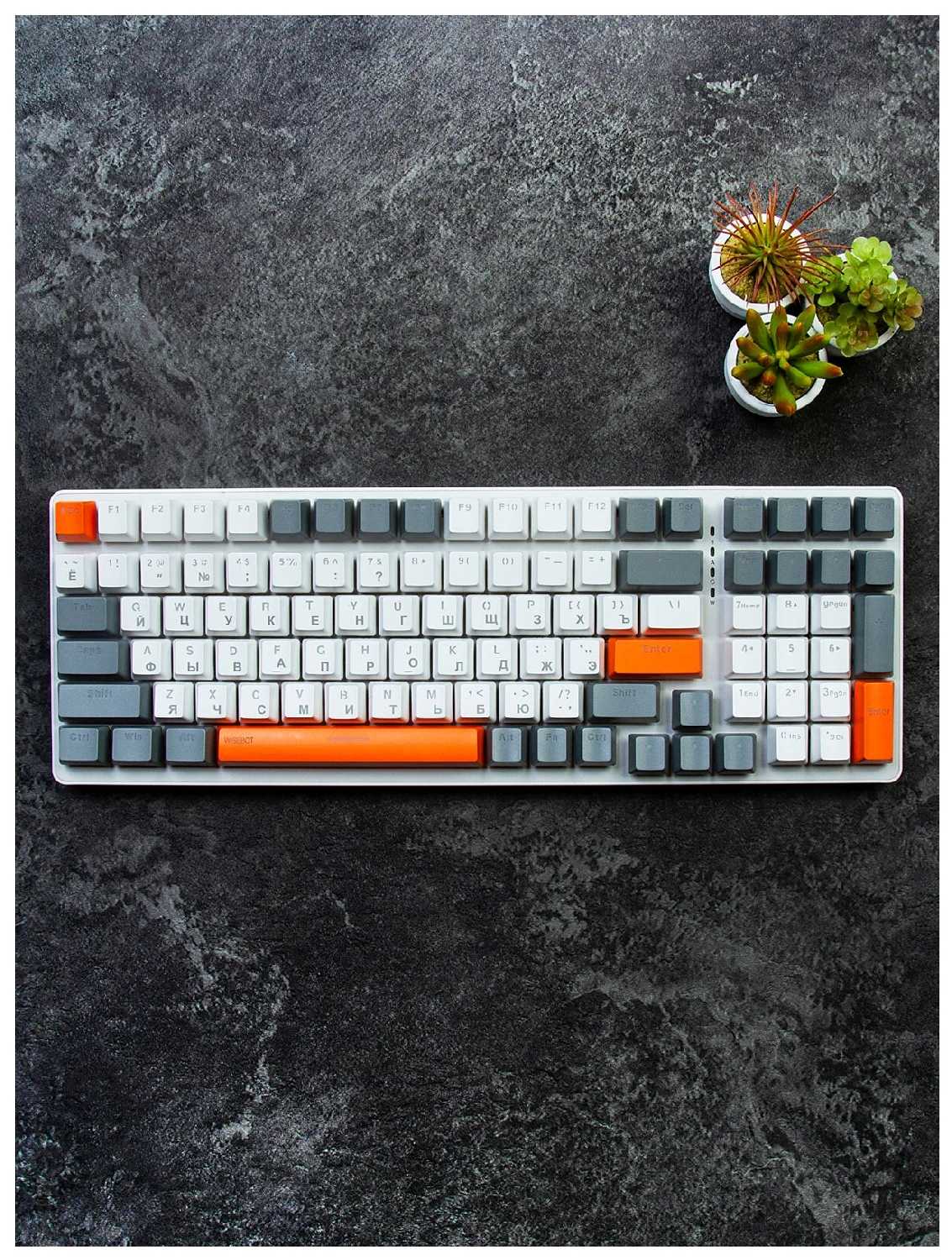 Конструкция и устойчивость: Многочисленные пользователи отмечают монолитную и прочную сборку клавиатуры. Корпус выполнен из качественного пластика, который на ощупь передает ощущение надежности и солидного веса. Благодаря этому клавиатура устойчиво лежит на столе и не скользит даже при активном использовании. Резиновые ножки обеспечивают дополнительное сцепление с поверхностью. Конструкция ножек двухуровневая, что позволяет пользователю выбрать один из двух удобных углов наклона для комфортного длительного набора текста или игровых сессий. Механизм ножек, по отзывам, крепкий и не вызывает нареканий. Некоторые пользователи, однако, обращают внимание на относительно высокий профиль самой клавиатуры, что может потребовать привыкания, особенно при переходе с низкопрофильных мембранных моделей. Общая эргономика оценивается положительно, но расположение функциональной клавиши FN справа, а не слева, для некоторых пользователей стало непривычным и потребовало периода адаптации. Габариты клавиатуры описываются как компактные для полноразмерного формата (95%), что является ее преимуществом для пользователей с ограниченным пространством на столе.