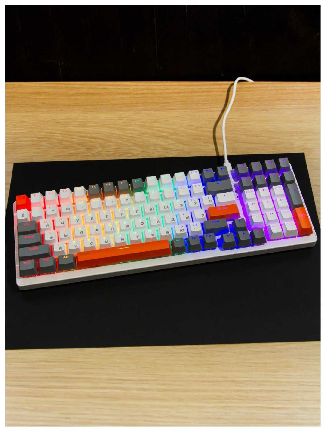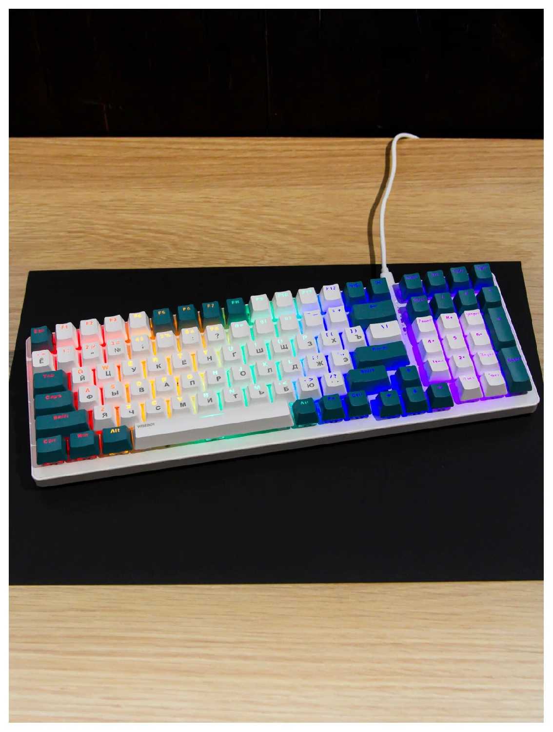 Кейкапы и общее впечатление от материалов: Клавиши (кейкапы) выполнены из приятного на ощупь пластика. Пользователи, перешедшие с мембранных клавиатур, высоко оценили тактильные ощущения от нажатий. Однако есть и замечания к качеству нанесения легенд. Кириллические символы нанесены методом печати и не подсвечиваются, что может быть неудобно при работе в темноте с выключенной подсветкой. Встречается единичный отзыв о заводском браке, где клавиши M и N для английской раскладки были установлены в неправильном порядке, хотя русская раскладка при этом была корректной. Кейкапы легко снимаются для чистки, что отмечается как большое удобство. Пользователи активно пользуются возможностью кастомизации, устанавливая сторонние наборы клавиш. Пробел и другие длинные клавиши не люфтят, что говорит о качественной стабилизации.
