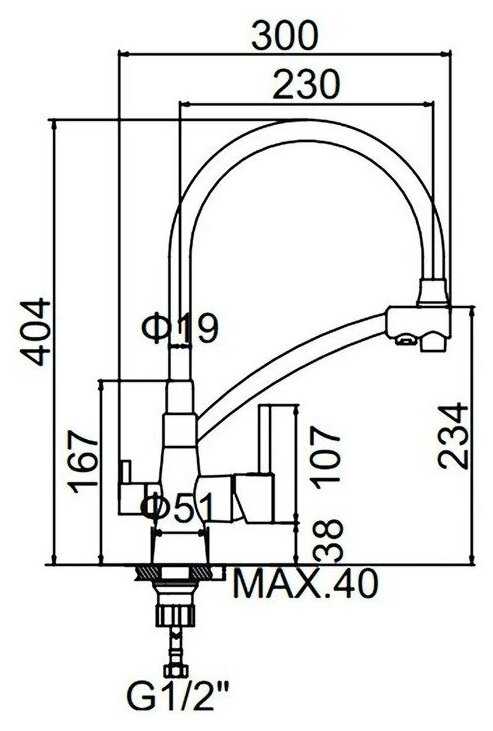 - Отдельный рычаг для питьевой воды избавляет от необходимости в дополнительном кране, минимизируя отверстия в столешнице.