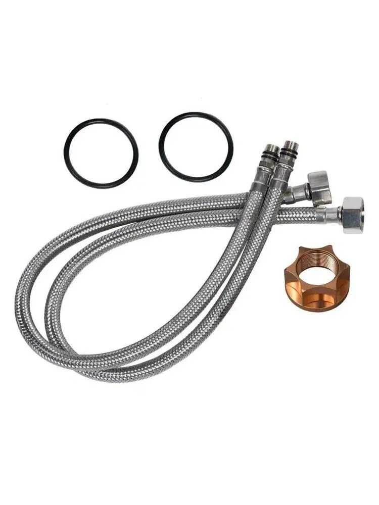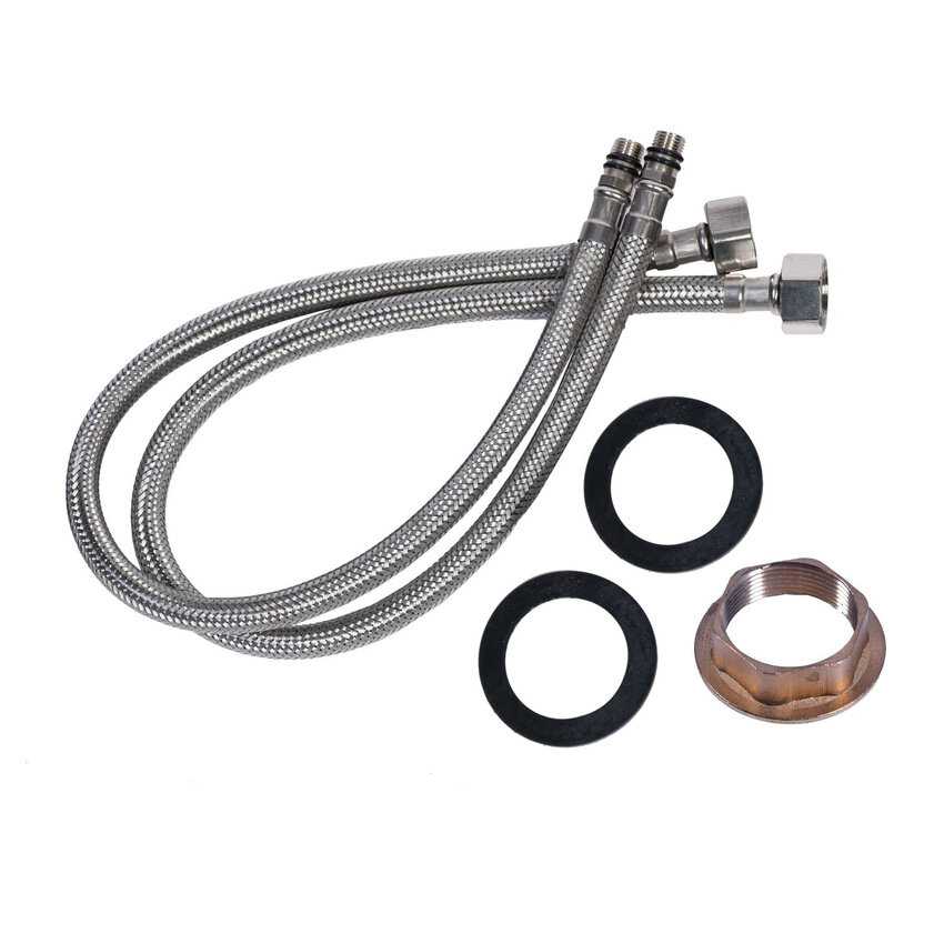 в коробке инструкция, кран в мешке и два шланга для установки