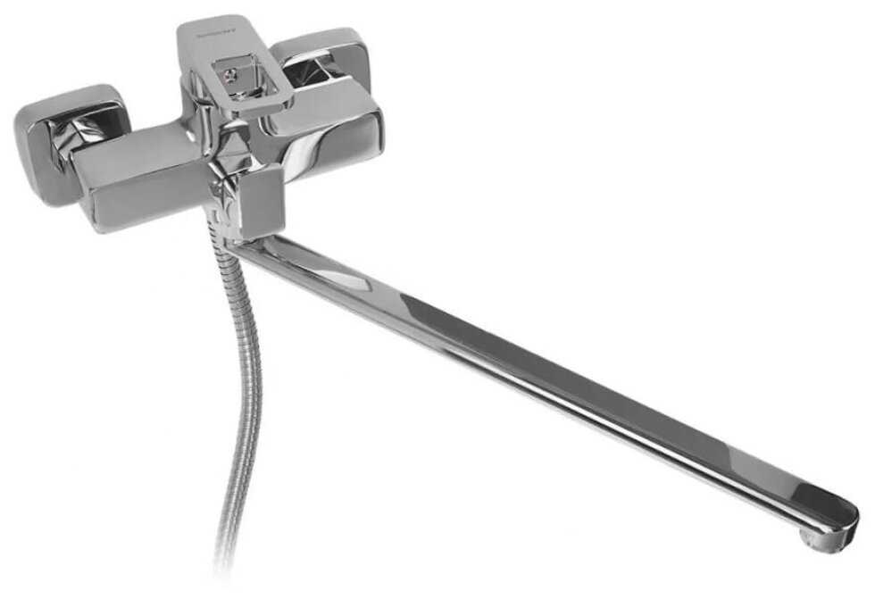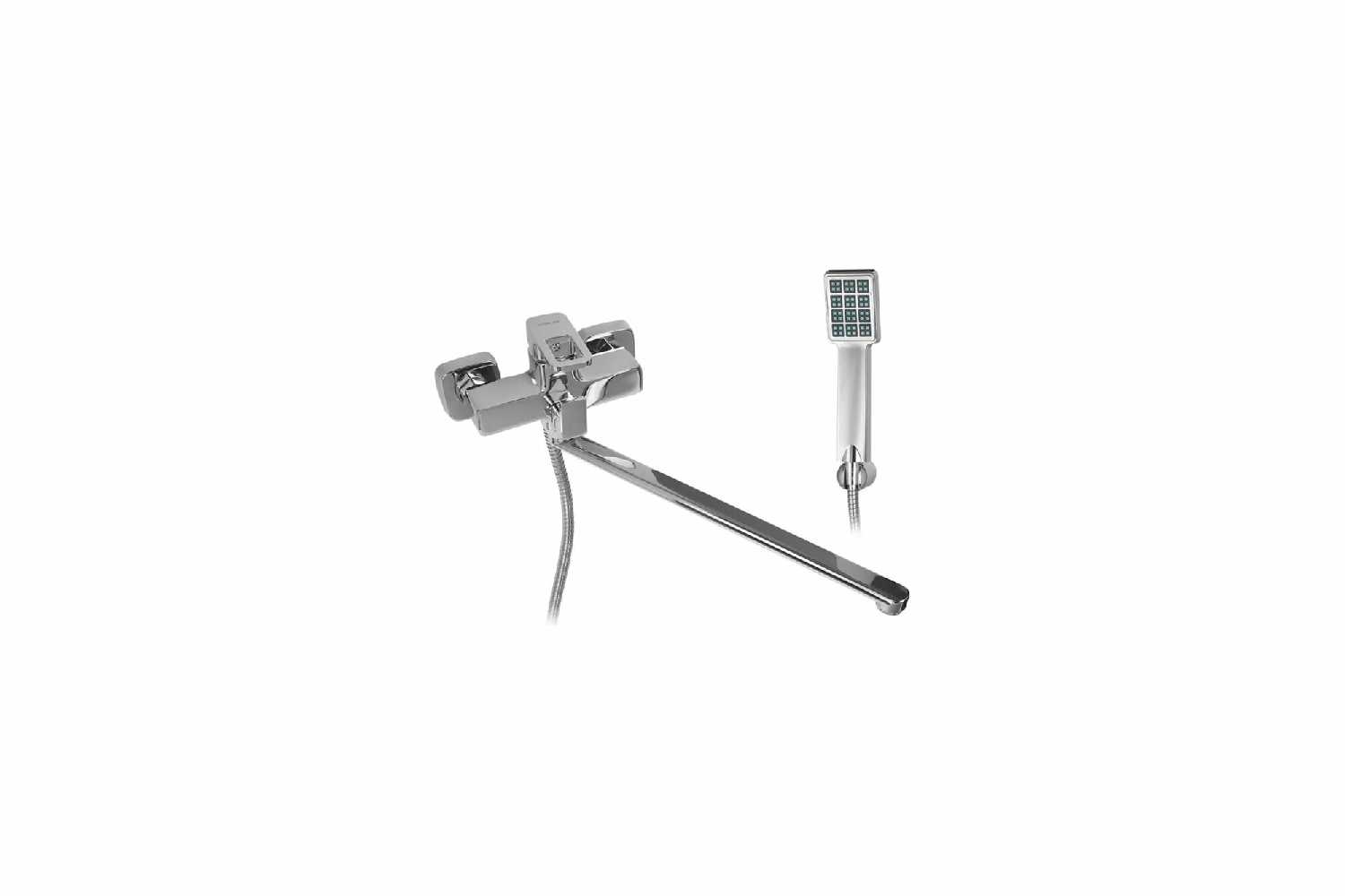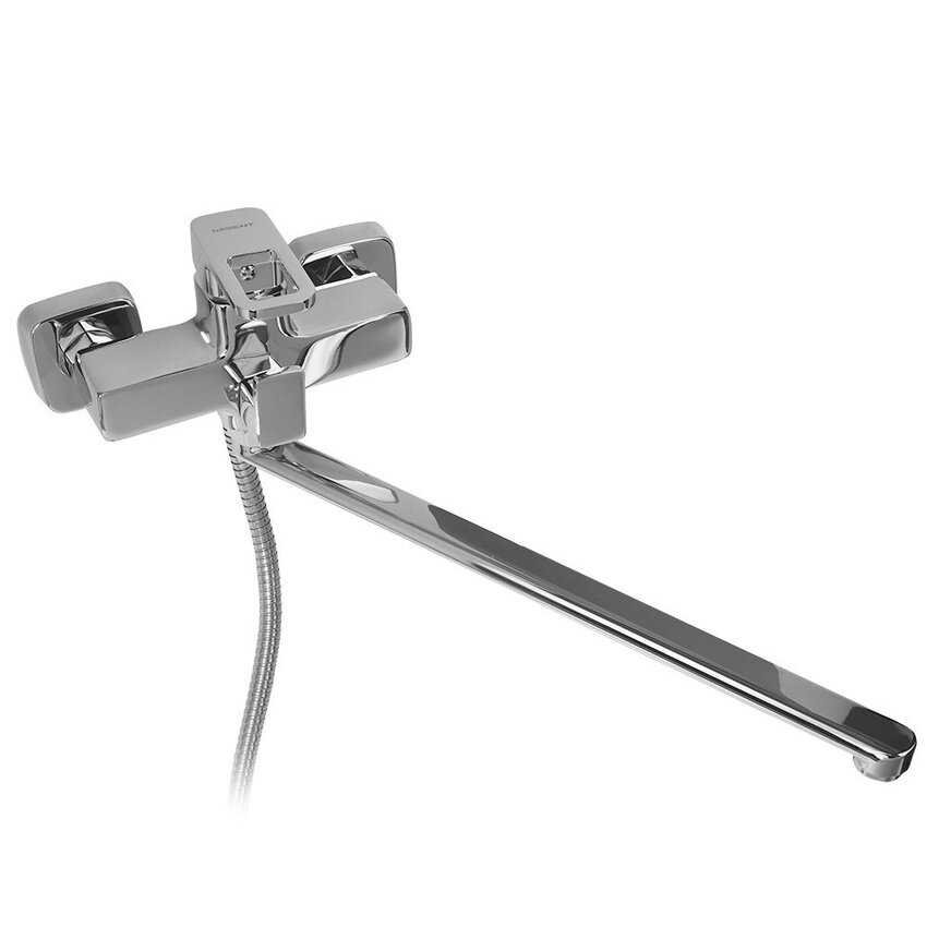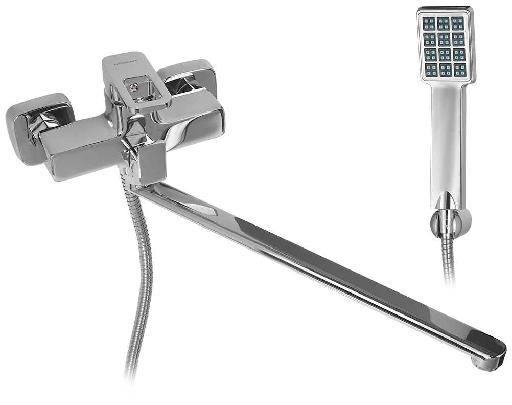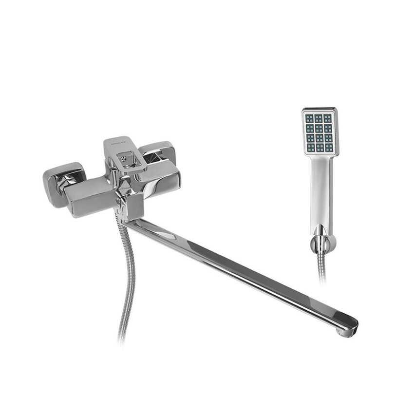 - + Классный дизайн, все со строгими формами. Даже крышки эксцентриков квадратные. Лейка в том же стиле что и весь смеситель. Внешне очень понравился.