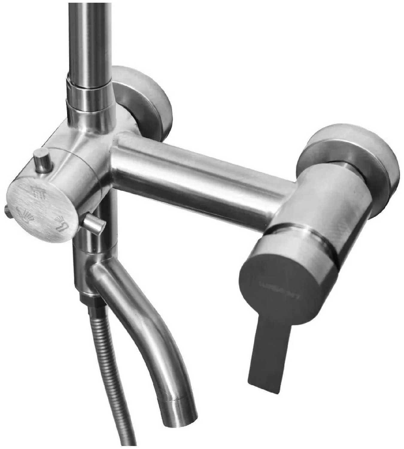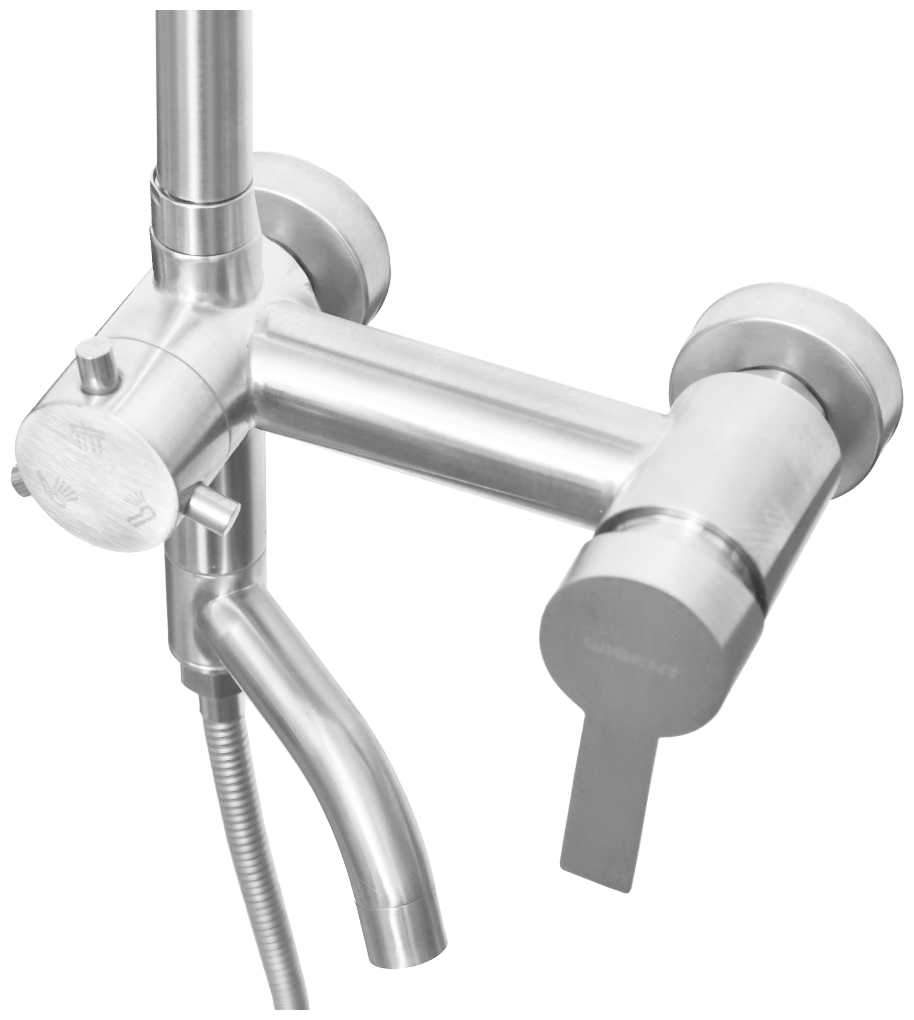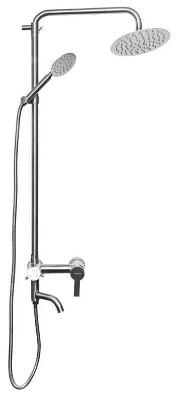 | Комплектация : | верхний душ, держатель лейки, душевая стойка, душевая штанга, лейка, переключатель потоков, смеситель, шланг |
