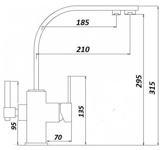 - высота излива: 295 мм.