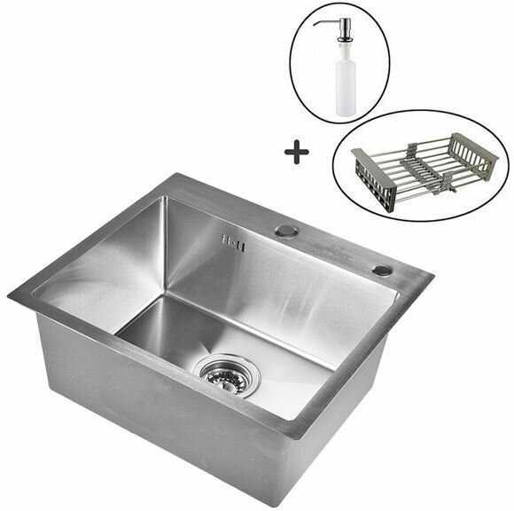 - + Красивая, стильная мойка. Глубокая и широкая, хорошо вписалась в кухню. Корзина для посуды и дозатор для мыла в комплекте.