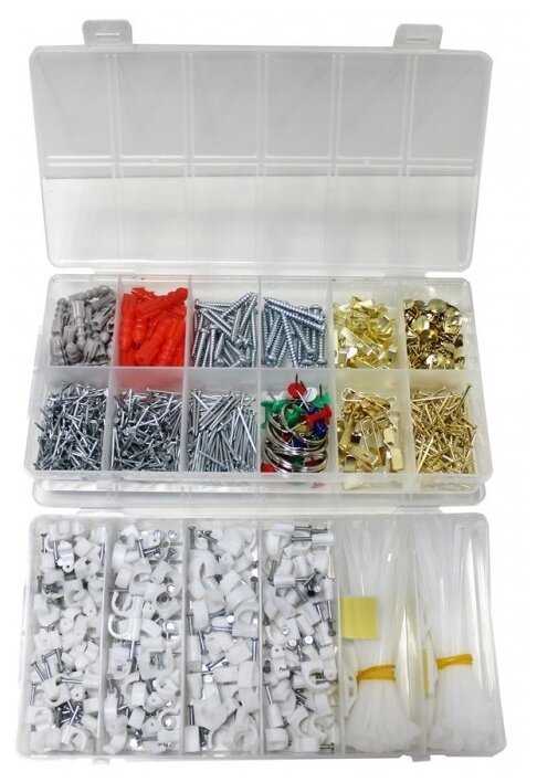 Дополнительная информация : | набор крепежа (саморезы, дюбели и пр.) - 801 шт, набор крепежа для электрики (кабельные крюки, стяжки, клеммы и пр.) - 325 шт |