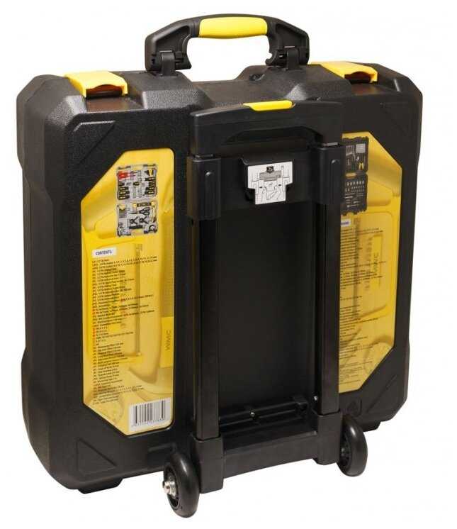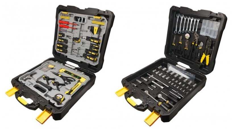 Дополнительная информация : | передвижной чемодан (2 в 1) со съемной ручкой, отвертка с храповым механизмом и реверсом 1/4", держатель магнитный 60мм для бит 1/4", механический тестер давления шин, уровень строительный 225 мм, зажимы универсальные – 2 шт., трещотки 1/4"и 1/2", воротки Т - образные: 1/4" 1/2", карданы шарнирные: 1/4" 1/2", удлинитель 1/2" 125 мм, удлинители 1/4": 50 100 мм, рукоятка для головок 1/4", комплект метизов (гвозди саморезы дюбеля крючки), комплект хомутов |