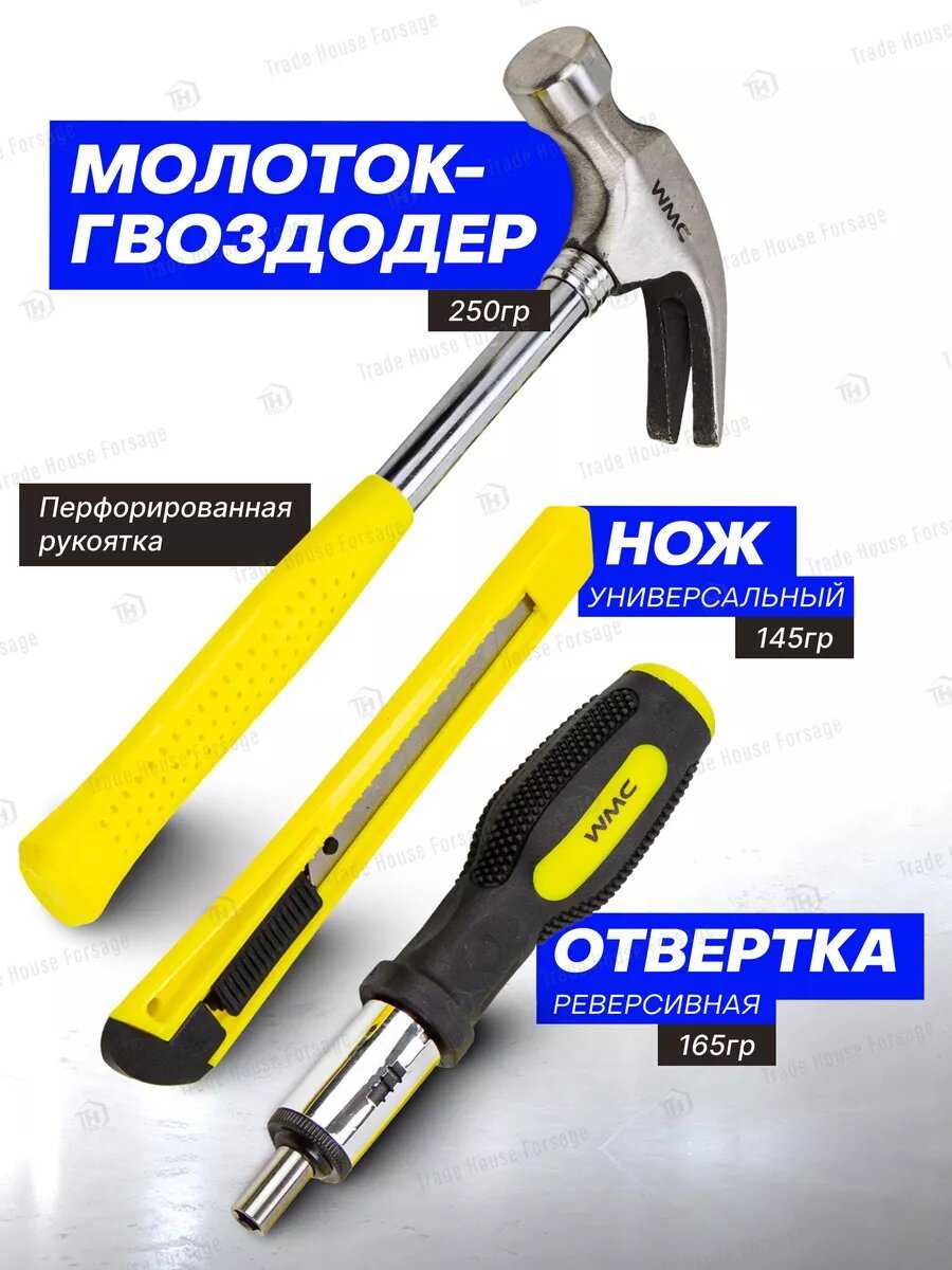 | Инструменты в комплекте : | бокорезы, вороток для головок, длинногубцы, клещи, клещи для обжима проводов, клещи для снятия изоляции, клещи переставные, ключ переставной гаечный, ключ разводной, ключ трубный рычажный, ключи гаечные, ключи имбусовые (шестигранные), кусачки, молоток, ножовка по дереву, ножовка по металлу, отвёртки, отвёртки для точных работ, пассатижи, плоскогубцы, рукоять для бит, рукоять для головок, струбцина, трещотка |