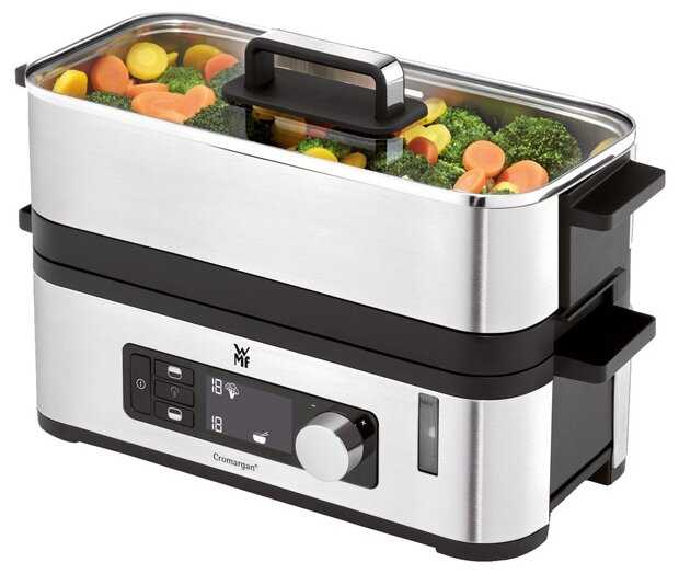 Пароварка WMF представляет собой премиальное решение для здорового питания, сочетающее немецкую инженерную точность и эргономичный дизайн. Её ключевое преимущество — полностью металлическая конструкция чаш, устраняющая проблему впитывания запахов, характерную для пластиковых аналогов. Технология раздельных уровней с индивидуальными таймера́ми позволяет синхронизировать приготовление разнородных блюд, что особенно ценно для семей с разными пищевыми предпочтениями. Мощности 900 Вт достаточно для равномерного пропаривания, но недостаточно для сокращения времени готовки плотных продуктов — это главный компромисс между энергоэффективностью и скоростью.