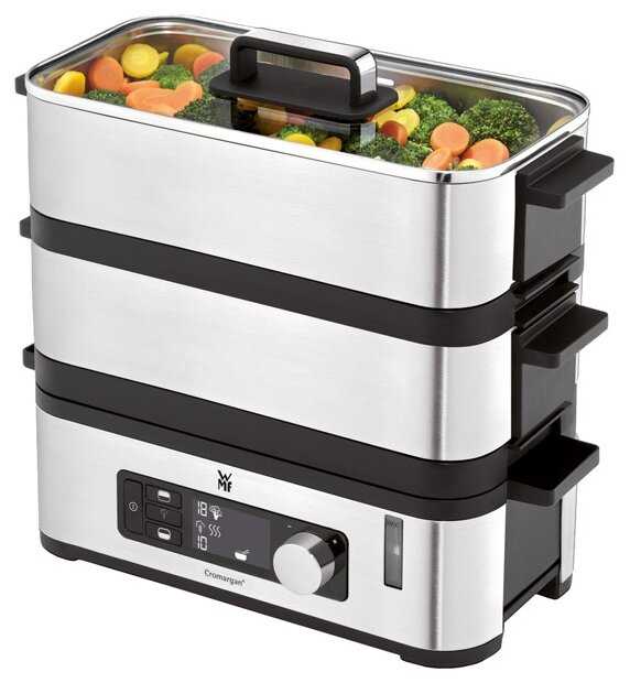 Пароварка WMF представляет собой премиальное решение для здорового питания, сочетающее немецкую инженерную точность и эргономичный дизайн. Её ключевое преимущество — полностью металлическая конструкция чаш, устраняющая проблему впитывания запахов, характерную для пластиковых аналогов. Технология раздельных уровней с индивидуальными таймера́ми позволяет синхронизировать приготовление разнородных блюд, что особенно ценно для семей с разными пищевыми предпочтениями. Мощности 900 Вт достаточно для равномерного пропаривания, но недостаточно для сокращения времени готовки плотных продуктов — это главный компромисс между энергоэффективностью и скоростью.