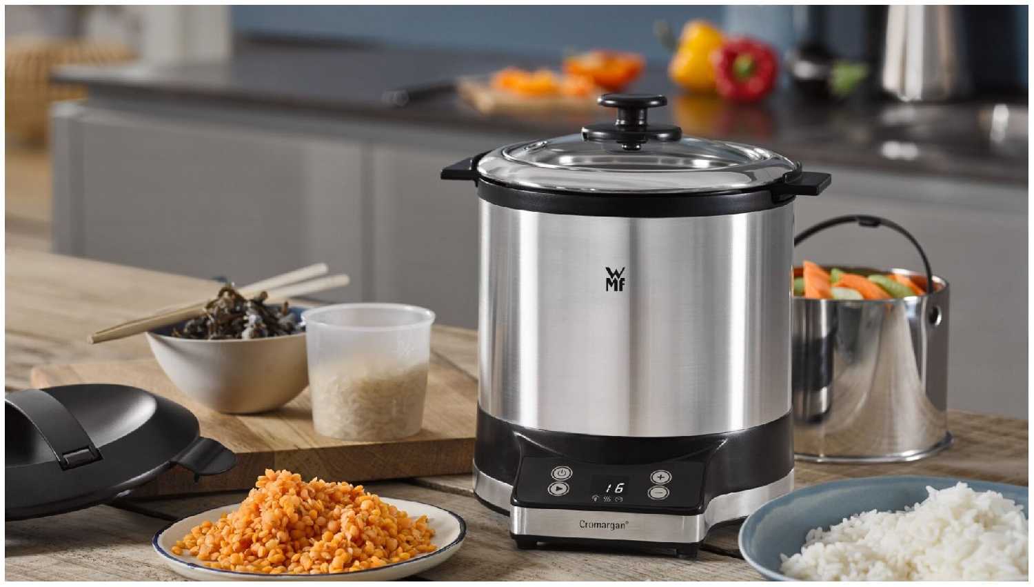 Сразу скажу , нравится именно качество исполнения WMF. Уже приобрёл чайник и блендер этого бренда, всё супер. По жизни не кулинар, а приходится готовить самому, но вкусненького то хочется, а с крупами никогда не ладилось. Вот тут эта рисоварка помогает на все сто. Хоть рис , хоть гречка, теперь получается идеально. Вкусный, рассыпчатый результат. Есть пароварка в комплекте, пока не пользовался. И удобно пользоваться комплектом чаша и крышка, можно с собой на работу брать, как контейнер для хранения получается. И проста до не могу , всего несколько кнопок настроек.