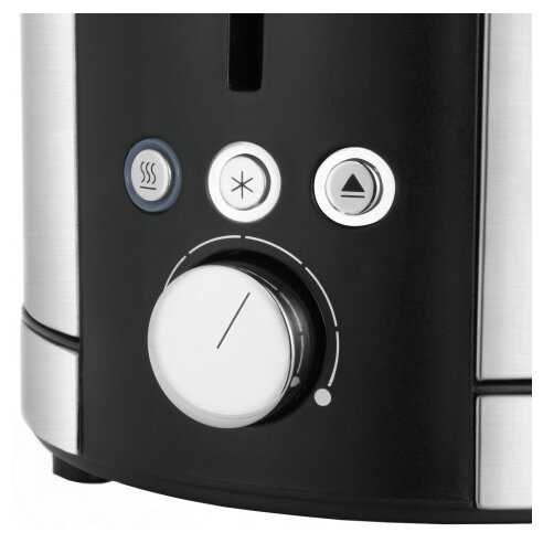 При переезде в новую квартиру мы решили приобрести современную качественную технику. К выбору подошли с душой))). По душе, в числе прочих, пришелся этот красавец-тостер!!! Его внешний вид и минималистическая конструкция привлекли к себе внимание в магазине. Консультант обрисовал нам все преимущества данной модели. Решили попробовать. Конечно же, с этим красавцем не выдерживает сравнение ни один из тостеров, которыми мы пользовались ранее. Он равномерно обжаривает хлеб. Тосты автоматически размещаются точно по центру. Степень обжарки можно регулировать, для этого есть семь режимов. Нам с мужем нравится хрустящий хлеб, а дочке - слегка подрумяненный, мягкий внутри. Очень привлекает возможность разогрева булочек и круассанов. Поддон для крошек гарантирует простоту в уходе. Я боялась, что на металле будут оставаться отпечатки пальцев, но их нет!!! Вся семья довольна приобретением.Кстати, приобрели еще несколько приборов этой фирмы, и остались в восторге от нее!!!