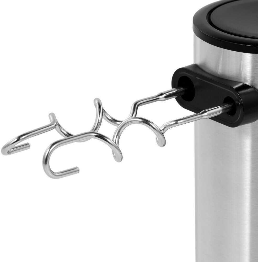 - В комплекте две пары насадок: венчики для взбивания и крюки для замеса плотного теста.