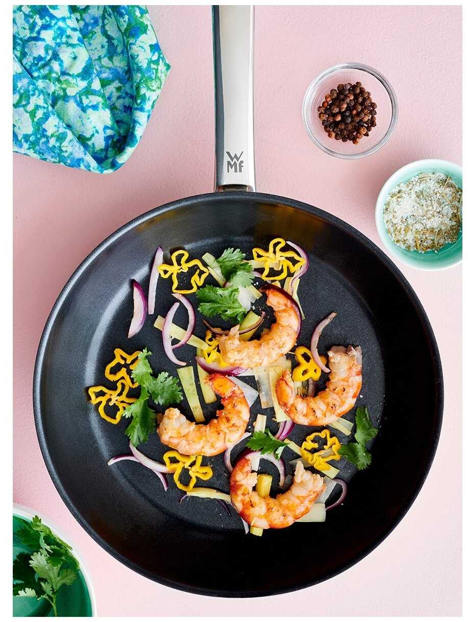 В наше время сложно найти хорошую сковороду. Чего только не покупали, всегда начинались проблемы. Решили взять WMF, так как уже есть набор их кухонных приборов, и все устраивает. Пока что это лучшая сковорода из тех, что у меня были! Ничего не пригорает, моется легко. И она легче моих предыдущих сковород. Меня все устраивает, буду и дальше пользоваться такой посудой.