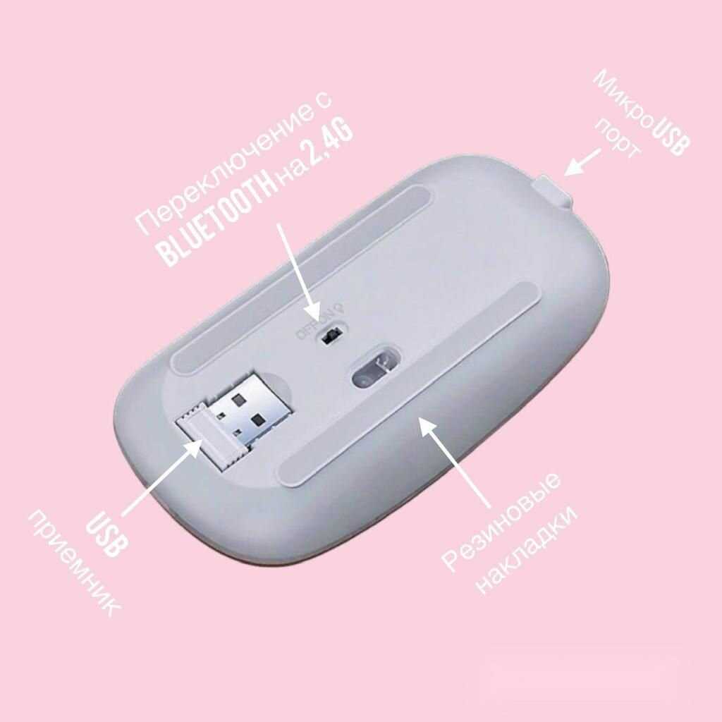 Механический тумблер на нижней панели позволяет моментально переключаться между Bluetooth (до 3 устройств) и USB-ресивером. 74% владельцев хвалят эту функцию для работы с ПК и планшетом одновременно. Разъём Type-C для зарядки расположен фронтально - подключать кабель можно без переворачивания мыши.