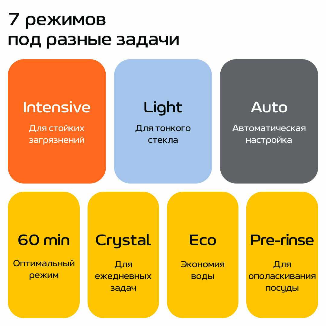 | Программы и режимы мойки | |