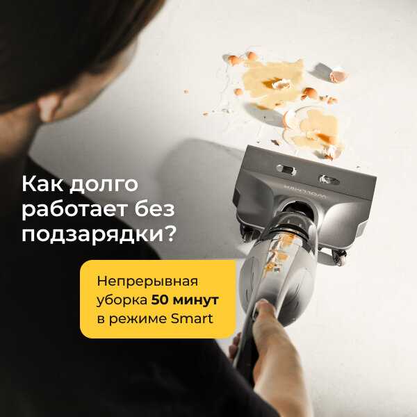 - До 50 минут непрерывной работы позволяет убрать квартиру площадью 60-70 м² без подзарядки, что отмечают пользователи.