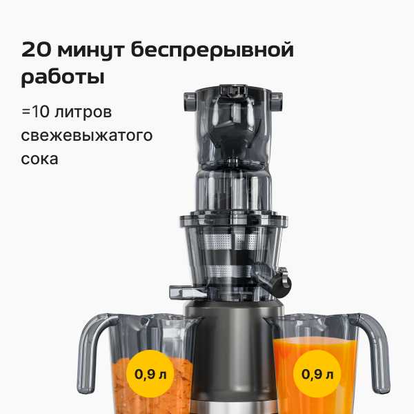 - ΠΠ»ΠΈΡΠ΅Π»ΡΠ½ΡΠΉ ΡΠΈΠΊΠ» ΠΎΡΠΆΠΈΠΌΠ° Π΄Π»Ρ ΠΏΠΎΠ»ΡΡΠ΅Π½ΠΈΡ 1 Π» ΡΠΎΠΊΠ° (Π΄ΠΎ 8-10 ΠΌΠΈΠ½ΡΡ Ρ ΠΏΠΎΠ΄Π³ΠΎΡΠΎΠ²ΠΊΠΎΠΉ).