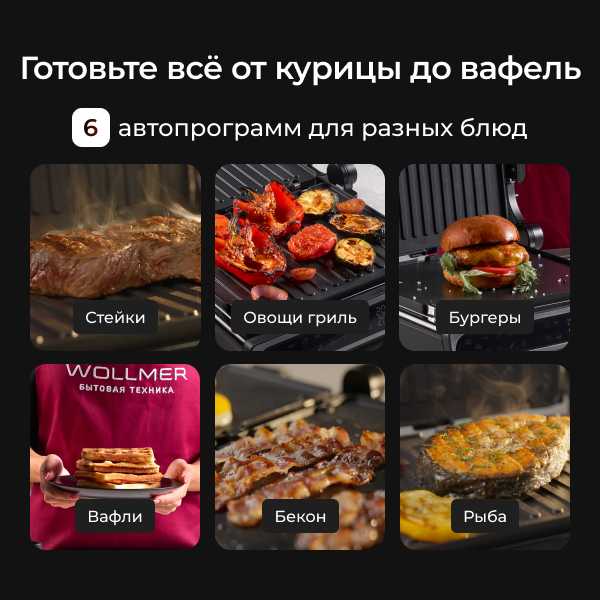 Автоматические программы демонстрируют разную эффективность в зависимости от типа продуктов. Для вафель, сэндвичей и стандартных овощных блюд они работают безупречно. Однако для мясных стейков пользователи часто отмечают необходимость повторного запуска программ или перехода на ручной режим, поскольку автоматика не всегда учитывает индивидуальные особенности продукта. -